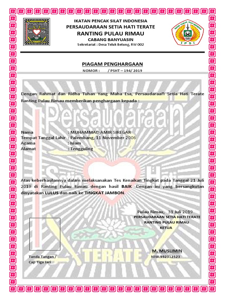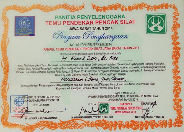 Contoh piagam penghargaan pencak silat.