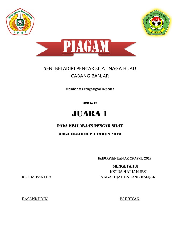 Related : Contoh Piagam Penghargaan Pencak Silat - Contoh piagam penghargaan pencak silat..